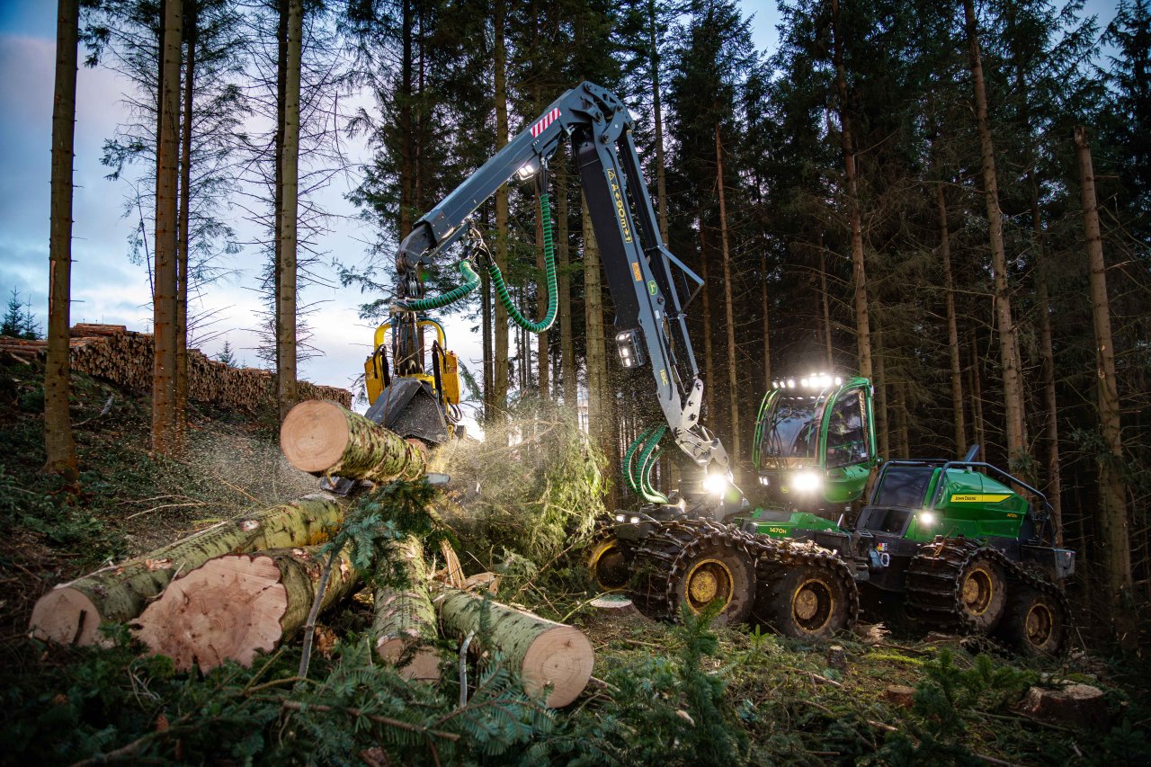 Vyšší produktivita při výrazně nižší spotřebě paliva, lepší stabilita a lepší ergonomie obsluhy. To jsou John Deere harvestory řady H. Nová hydraulika se třemi speciálními čerpadly nabízí větší hydraulický výkon a vyšší pracovní tlak při posuvu kmenu. Optimalizovaný systém zajišťuje vyváženou spotřebu paliva. Nová funkce Aktivní rámové brzdy přináší větší stabilitu, ať už při práci na strmých svazích, nebo na rovném povrchu. To usnadňuje práci, když je rameno otočené do strany a pracovník obsluhy má k dispozici větší pracovní plochu. Motor je otočen o 180 stupňů, palivové nádrže, nádrže hydraulického oleje a čerpadla jsou umístěny před motorem a ventilátor se nachází v zadní části stroje. Díky tomu je kabina velmi tichá.