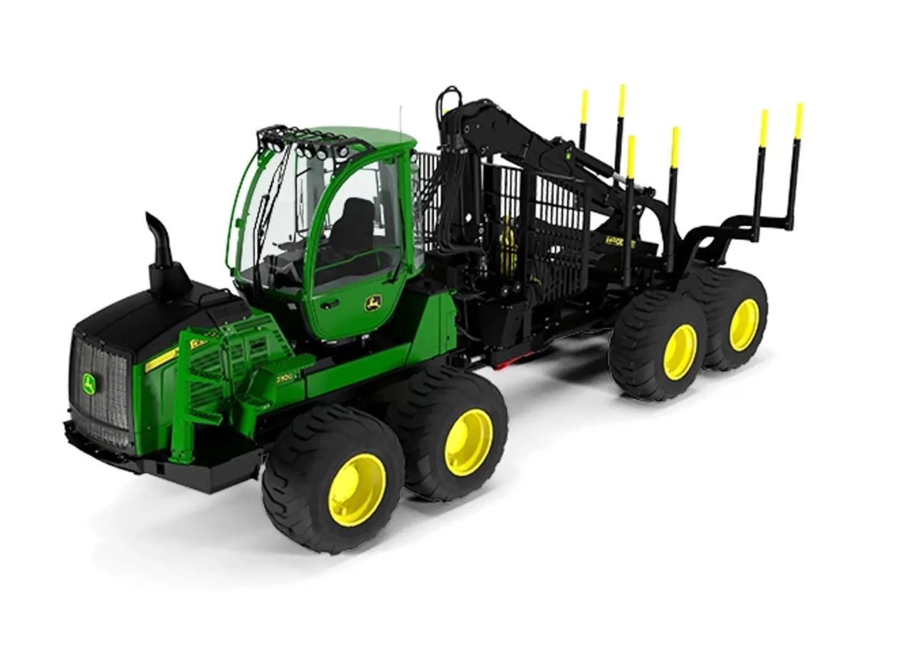 Robustní rám a podvozek se zesílenými nápravami, výkonný prověřený motor John Deere PowerTech o výkonu 156 kW s kroutícím momentem 935 Nm v širokém rozpětí otáček plnící emisní normy EPA FT4/EU Stage IV doplněný hydraulickým jeřábem CF7 a otáčecí a polohovací komfortní kabinou. To je záruka vysoké produktivity a spolehlivosti v podání vyvážecího traktoru John Deere 1210G s užitečnou nosností 13 tun.