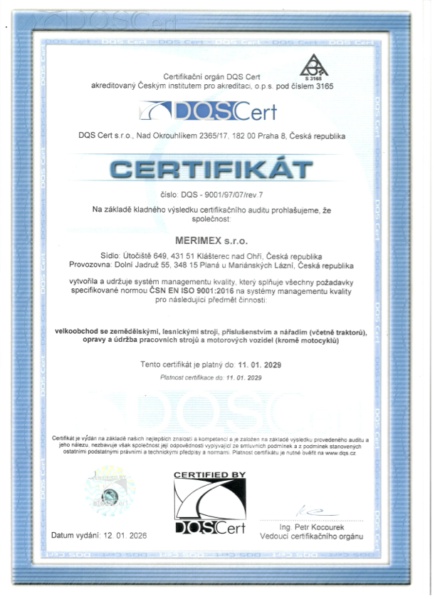 Certifikát systému managementu kvality.