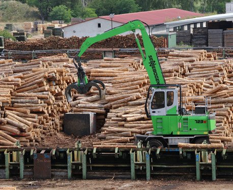 Průmyslové rypadlo Sennebogen 723 Pick and Carry pro manipulaci se dřevem